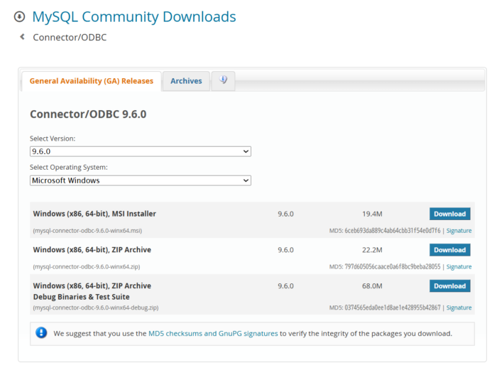 Connector/ODBC のダウンロード・インストール